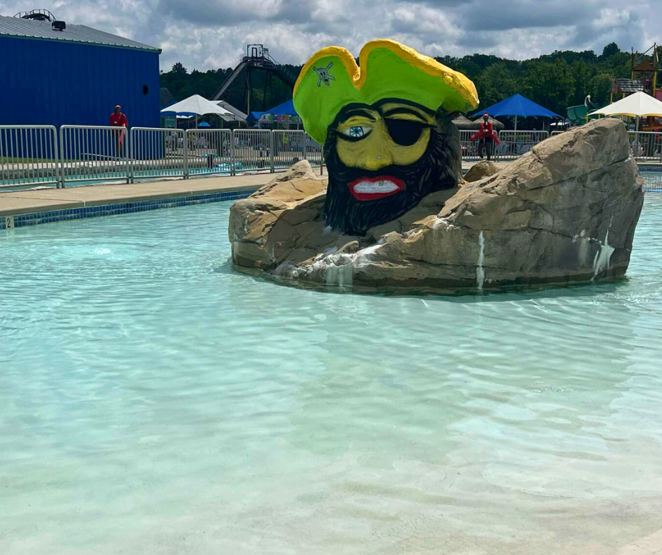 Set sail for adventure at Shipwreck Bay! This pirate-themed splash zone is perfect for young swashbucklers, featuring an epic wrecked ship, 6 fun slides, and a wading pool made for big splashes. Escape the shipwreck and plunge into a world of playful imagination—pirate hats not required!